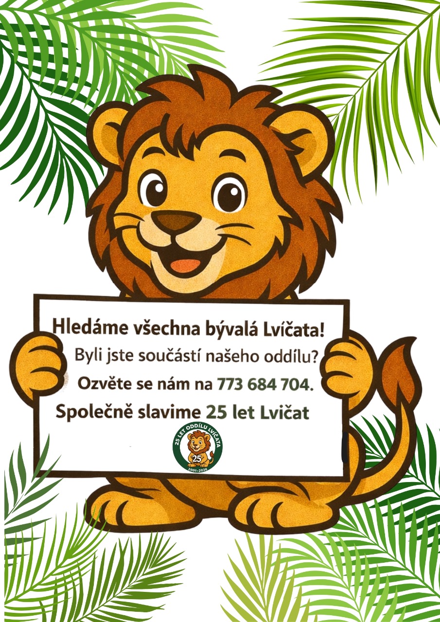 Opravdu. Něco se chystá a je k tomu docela dobrý důvod. Oddíl Lvíčata totiž oslaví v letošním roce celých 25 let od svého vzniku a to už je dost dobrý důvod něco podniknout. Za těch dvacet pět let prošlo oddílem mnoho členů (troufáme si říct, že se počítají na stovky). O některých víme a někteří se nám úplně ztratili. Pro začátek tedy hledáme všechny bývalé členy oddílu Lvíčata – ozvěte se nám na WhatsApp 773 684 704, nebo i případně na náš e-mail vetrnicios@seznam.cz